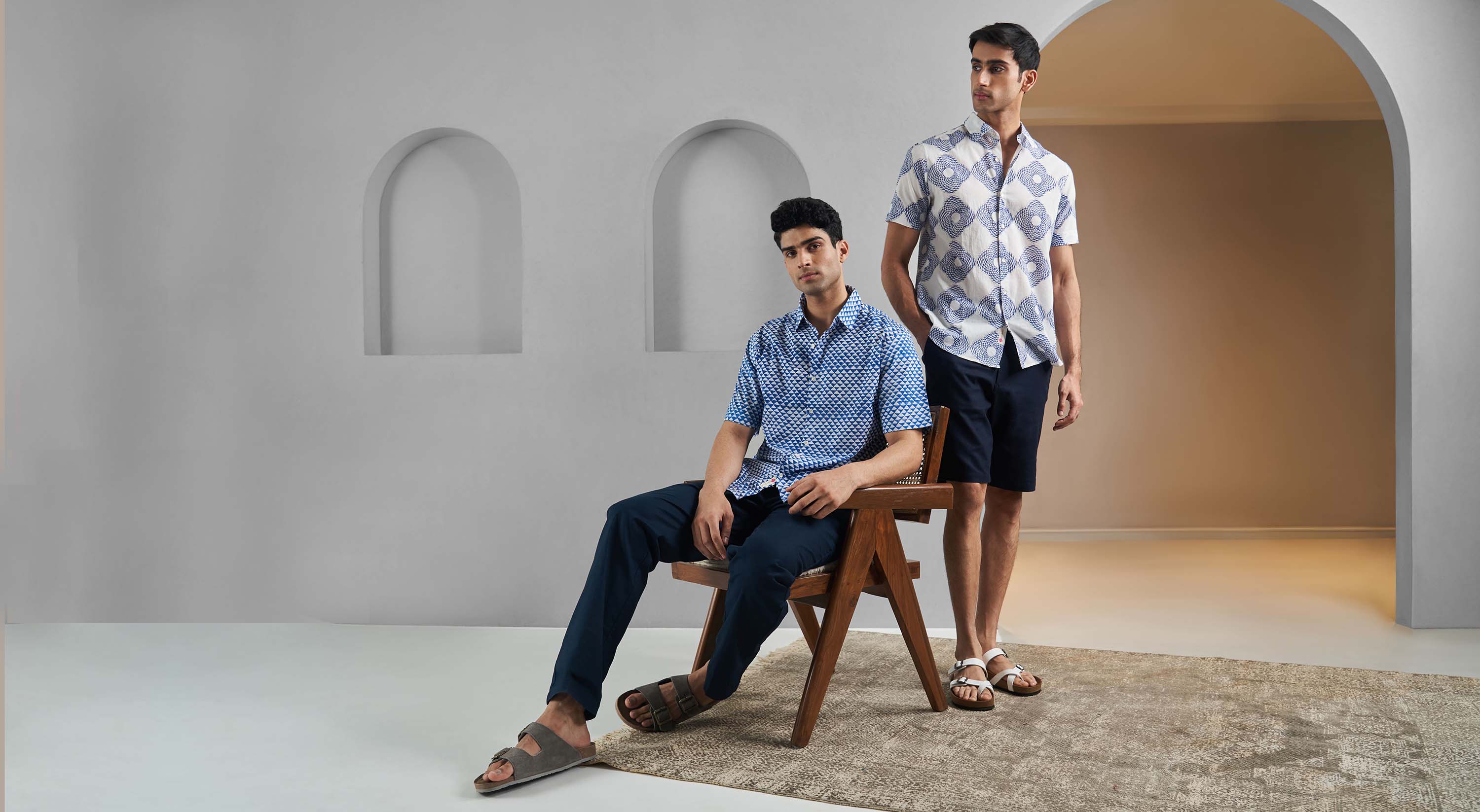 Blue Triangle Medallion Handblock Printed Men's Shirt