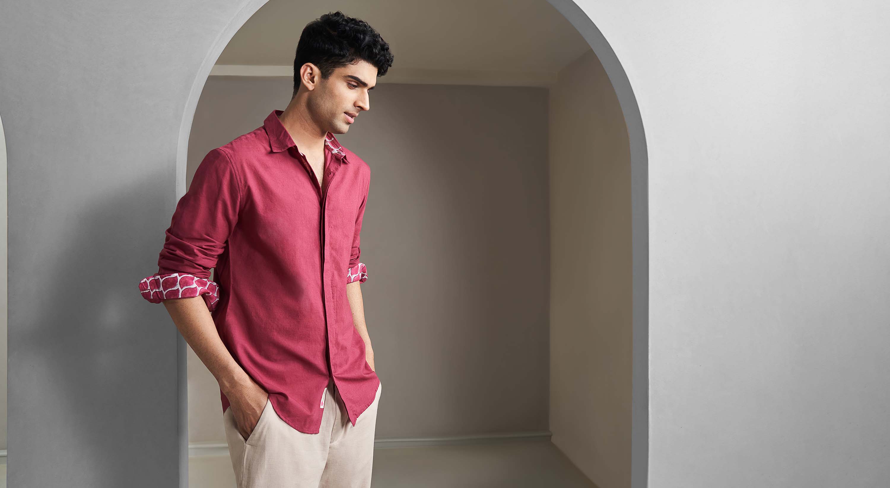 Brown/Blue 2color Twig Handblock Printed Men's Shirt