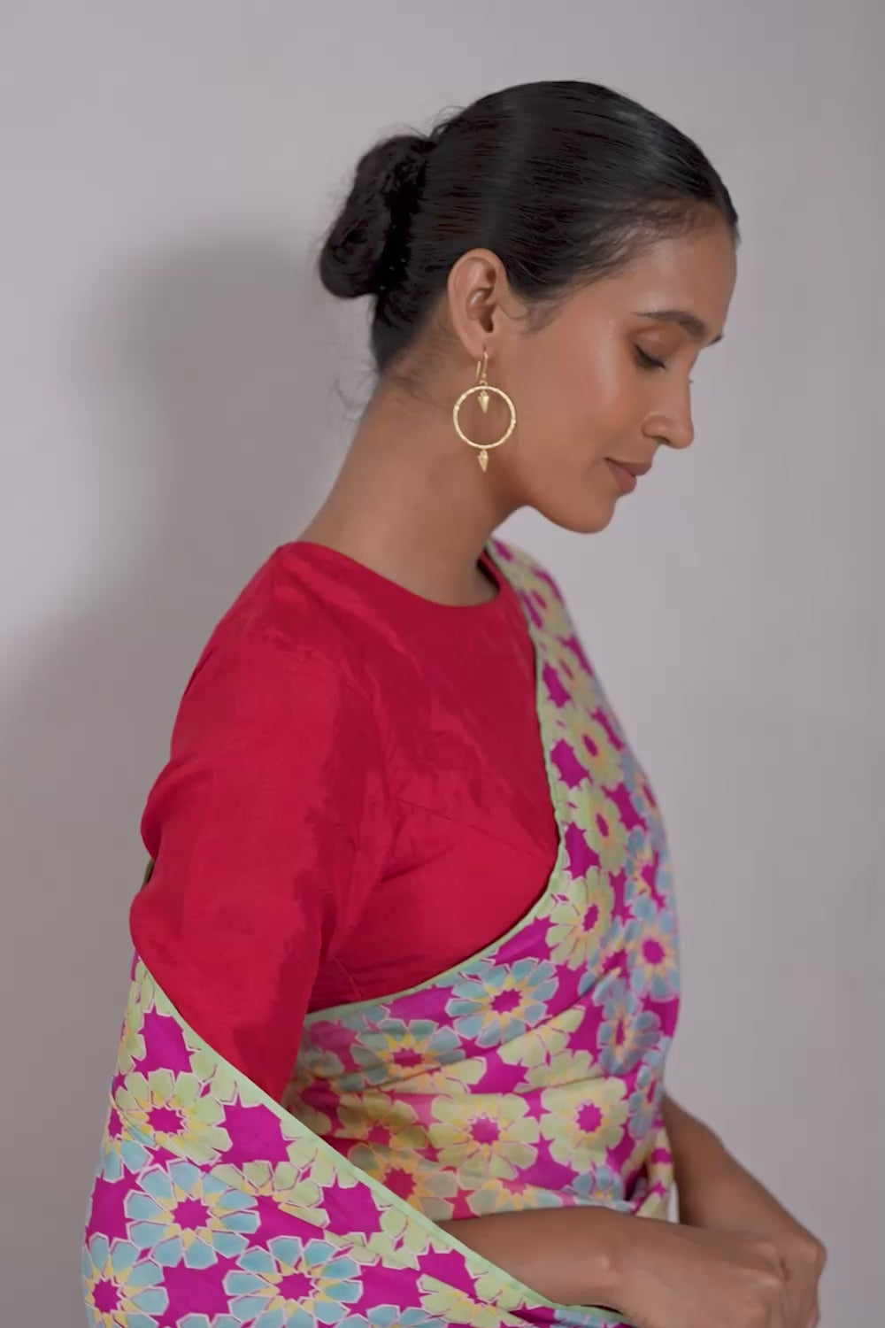 A saree like no other—this limited edition piece is handwoven in West Bengal, hand-dyed, and hand block printed by skilled artisans in Sanganer, Jaipur. Crafted in small batches, each saree is unique, celebrating centuries-old techniques with a contemporary design language.