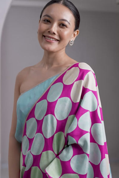 Lightweight, breathable mulberry silk is handwoven in West Bengal before it is hand dyed and hand blockprinted in Sanganer, Jaipur in bespoke Brahma Karma prints. The light weight silk makes this saree wearable in every season. The buttery soft drape is sure to make you feel beautiful everytime you drape it. Its no surprise when our patrons keep coming back for this.