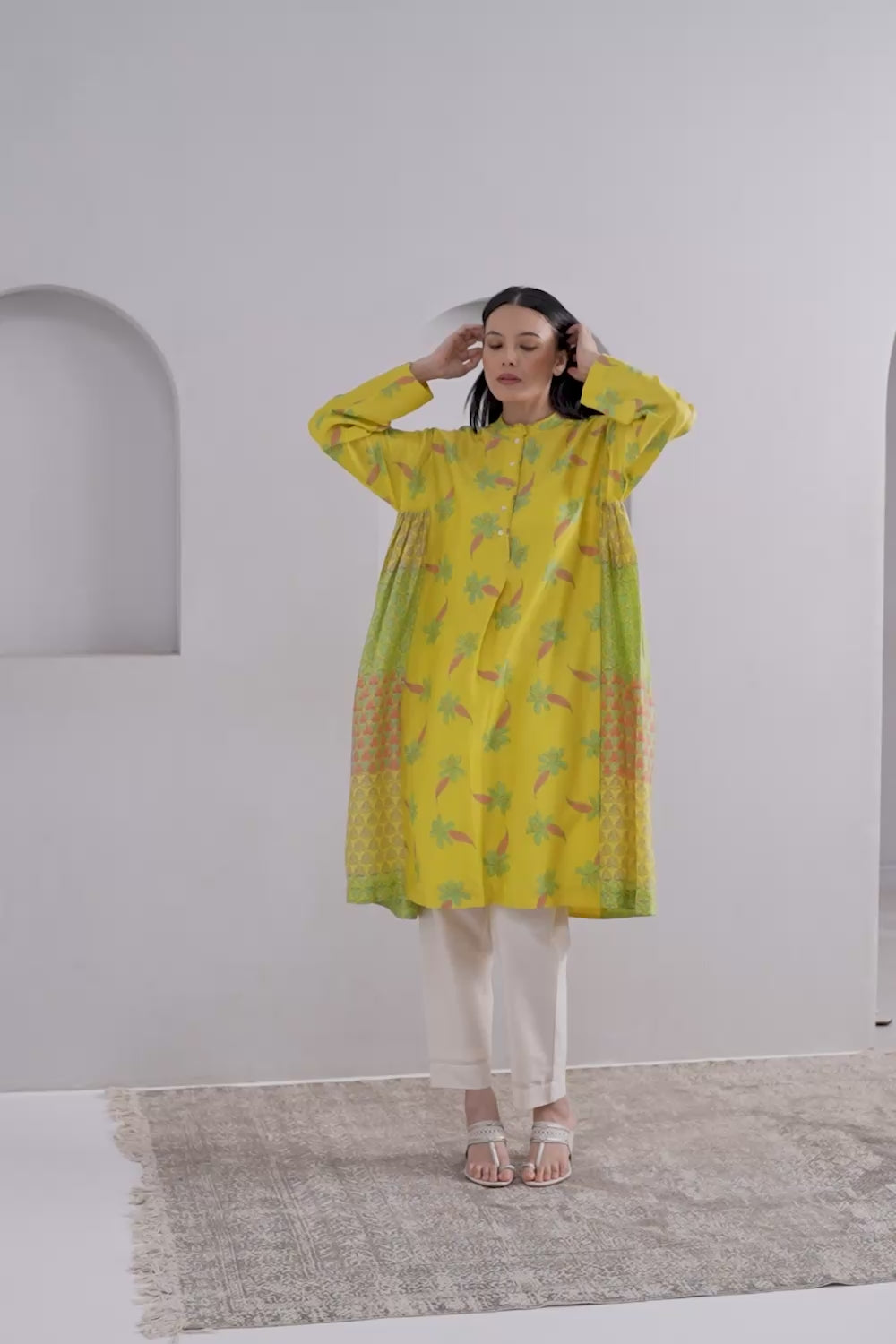 Where timeless craft meets modern ease — this one-size-fits-all tunic dress is designed to drape beautifully on every body. Crafted from luxurious Chanderi (cotton-silk), each piece is hand-dyed and hand block printed in Brahma Karma’s bespoke patterns. The collar and placket feature fine artisanal detailing, while the contrast-printed side panels enhance the silhouette with subtle drama.