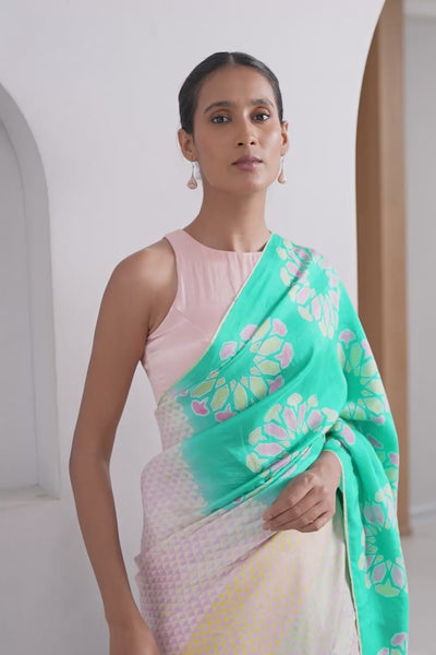 A saree like no other—this limited edition piece is handwoven in West Bengal, hand-dyed, and hand block printed by skilled artisans in Sanganer, Jaipur. Crafted in small batches, each saree is unique, celebrating centuries-old techniques with a contemporary design language.