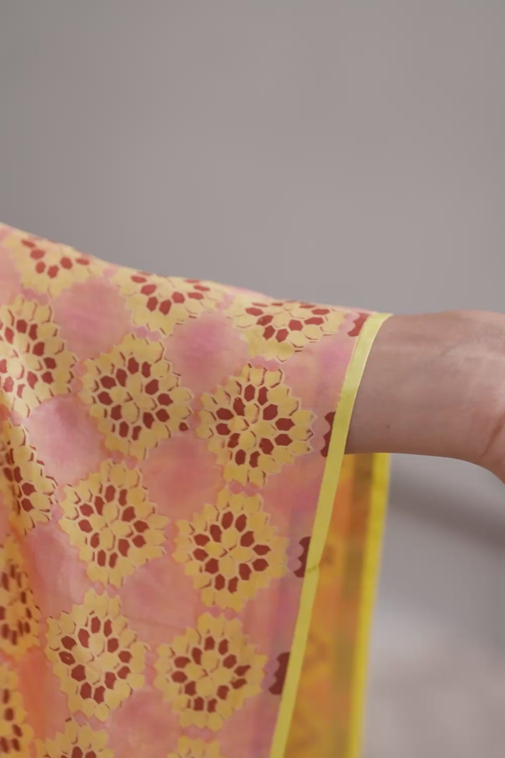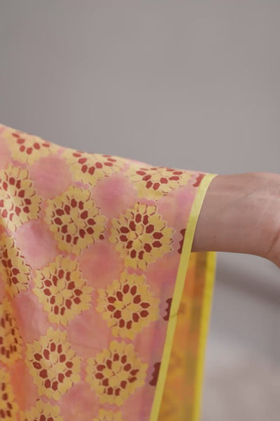 A saree like no other—this limited edition piece is handwoven in West Bengal, hand-dyed, and hand block printed by skilled artisans in Sanganer, Jaipur. Crafted in small batches, each saree is unique, celebrating centuries-old techniques with a contemporary design language.